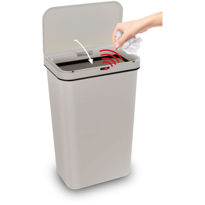 Dacă sunteți în căutarea pentru soluție practică și igienică pentru gestionarea deșeurilor menajere, acest coș de gunoi sofisticat este alegerea potrivită. Se remarcă mai ales prin sistem de deschidere fără contactcând doar fluturați mâna în fața senzorului încorporat și capacul se deschide automat. Datorită capacului generos volum de 50 de litri oferă o capacitate suficientă pentru deșeurile menajere sau de birou obișnuite.