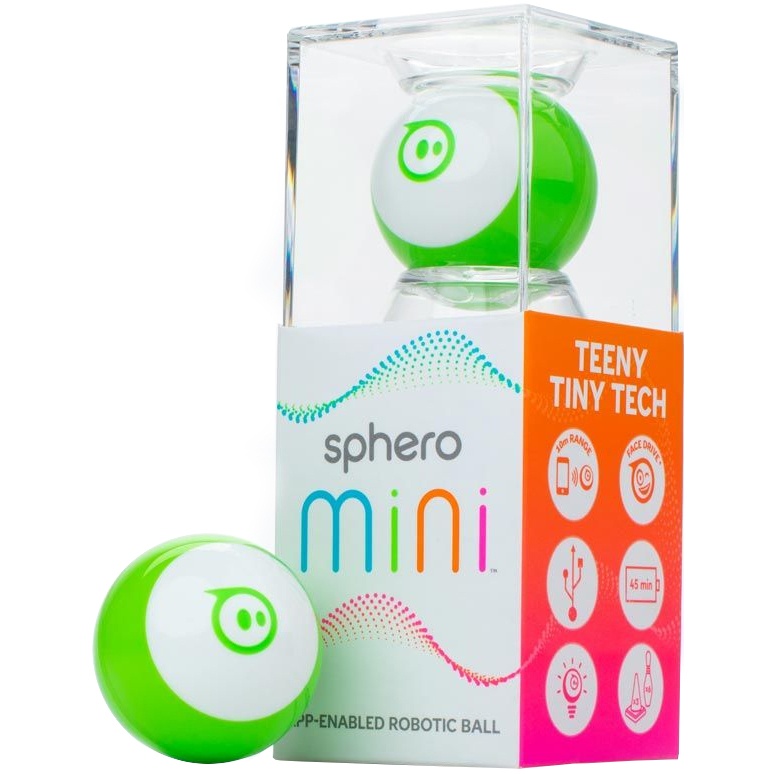 Sphero Mini este cea mai mică minge robotică din lume. În interior, conține microtehnologie cu un mic giroscop, accelerometru, LED-uri și conexiune Bluetooth. Poate fi controlată prin aplicație manual sau chiar prin expresii faciale. Sphero este utilizat pentru a controla trei jocuri în aplicație și este posibil, de asemenea, să-l programați prin JavaScript. Acesta va funcționa până la o oră cu o singură încărcare. Se poate deplasa cu o viteză de 1 metru pe secundă. Pachetul include de asemenea conuri și conuri mici.