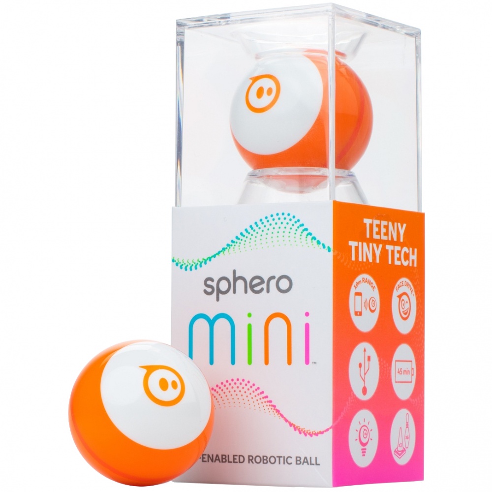 Sphero Mini este cea mai mică minge robotică din lume. În interior, conține microtehnologie cu un mic giroscop, accelerometru, LED-uri și conexiune Bluetooth. Poate fi controlată prin aplicație manual sau chiar prin expresii faciale. Sphero este utilizat pentru a controla trei jocuri în aplicație și este posibil, de asemenea, să-l programați prin JavaScript. Acesta va funcționa până la o oră cu o singură încărcare. Se poate deplasa cu o viteză de 1 metru pe secundă. Pachetul include de asemenea conuri și conuri mici.
