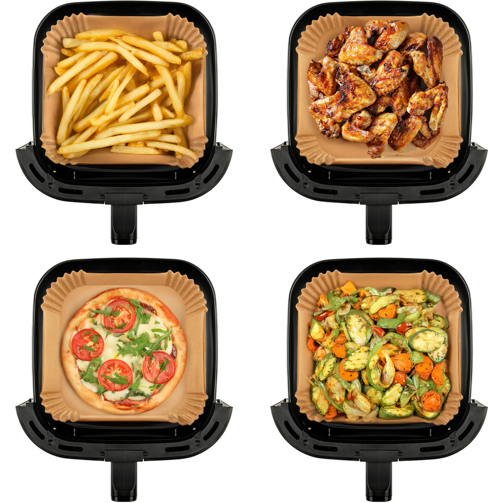 Mucegaiul de hârtie pentru friteuze cu aer cald protejează coșul friteusei cu aer cald de reziduuri alimentare, pete de ulei și zgârieturi. Aceasta prelungește durata de viață a coșului, facilitând curățarea și întreținerea friteuzei, în special la prepararea chipsurilor, aripioarelor prăjite etc. Pentru temperaturi de până la +220 °C.