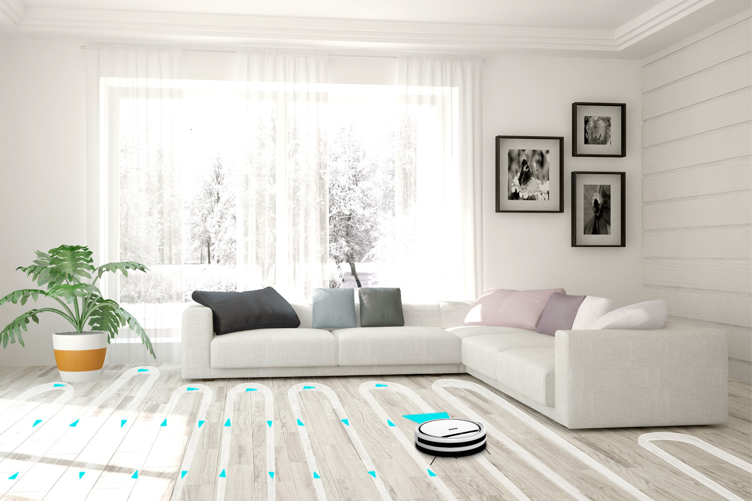 Sistemul de navigație giroscopică creează o hartă a spațiului și astfel ajută la direcționarea aspiratorului robot TESLA RoboStar T60 exact acolo unde este nevoie și să nu curețe același loc de mai multe ori.