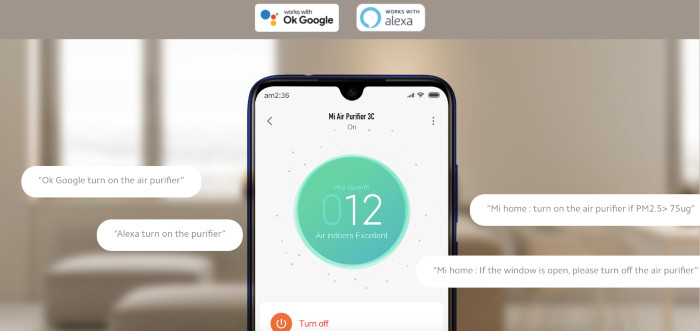 Aplicația mobilă Mi Home îți va fi la dispoziție, cu ajutorul căreia poți monitoriza datele de la stația de epurare, oriunde te-ai afla. Prin intermediul aplicației, puteți activa și cronometrul de pornire și oprire și puteți conecta dispozitivul la alte produse din seria Mi Smart. Xiaomi Mi Air Purifier 3C acceptă Google Assistant și sistemul inteligent Alexa SI pentru control vocal.