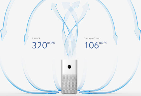 Sistemul de circulație la 360 ° asigură rotația dispozitivului în toate direcțiile, datorită căreia curăță într-o oră aerul într-o cameră de până la 106 m2.