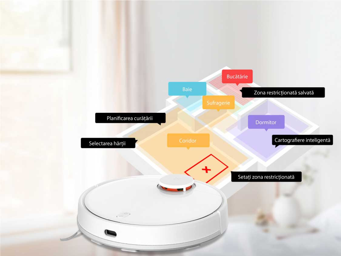 Datorită aplicaţiei Mi Home, puteți programa, când și cât de des va aspira ajutorul dvs. robotic sau puteți să-i dați o instrucțiune unică de aspirare, chiar și atunci când trebuie să stați la serviciu.
