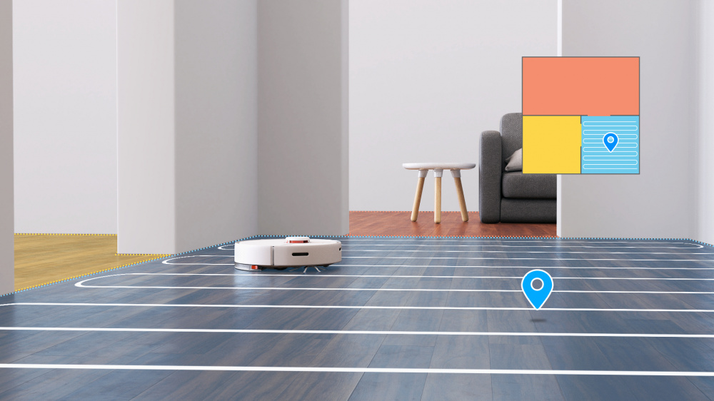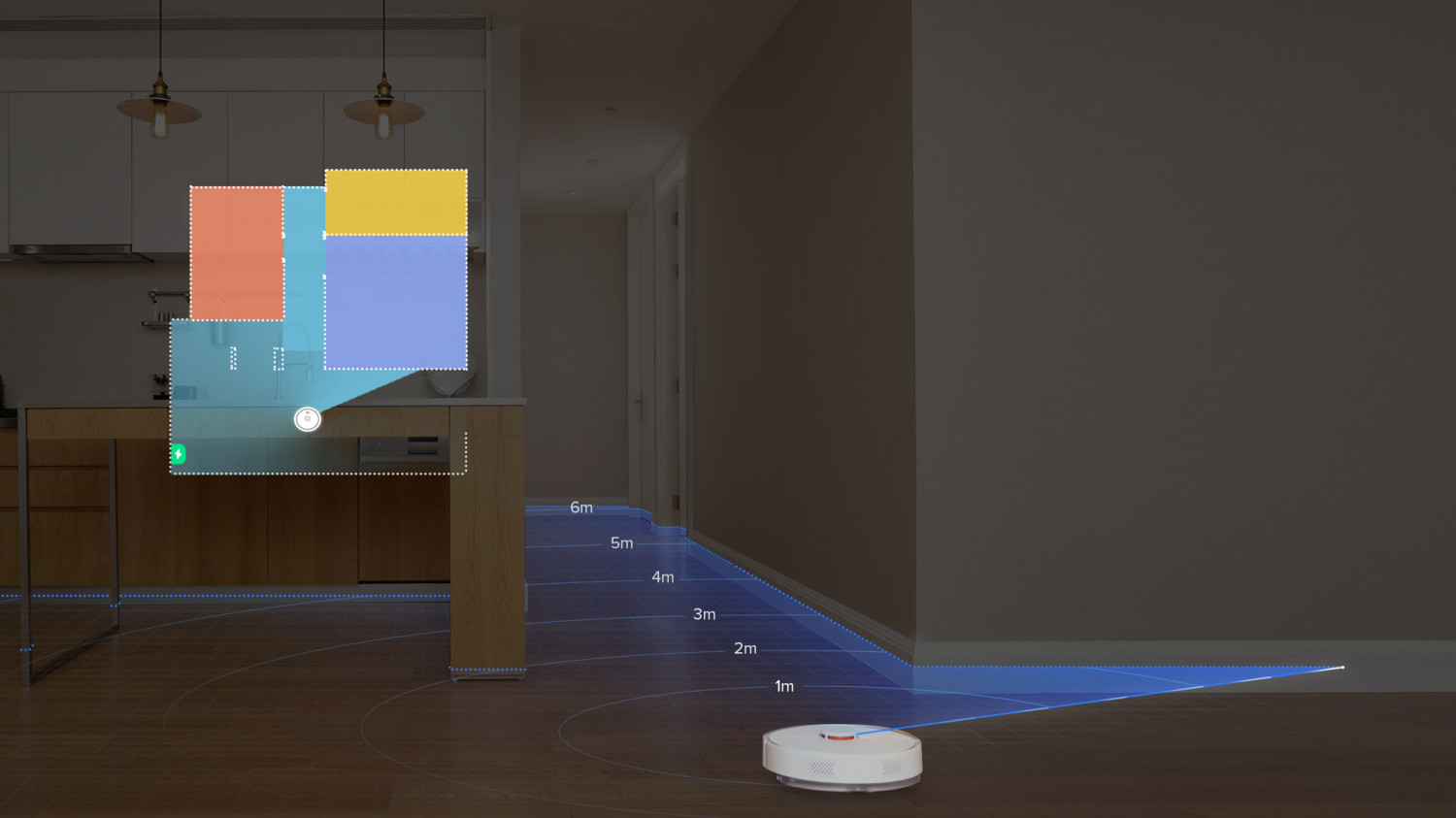 Algoritmul de localizare și mapare simultană (SLAM) este utilizat şi de NASA în aparatele sale care le trimite spre Marte. De asemenea, este utilizat şi de Google în mașinile sale autonome fără șofer. Pe baza datelor obținute de la senzorul laser de distanță, giroscop, vitezometru și accelerometru, algoritmul creează o hartă a încăperii. Aspiratorul își recunoaște locația exactă pe hartă și planifică în siguranță un traseu de aspirare.