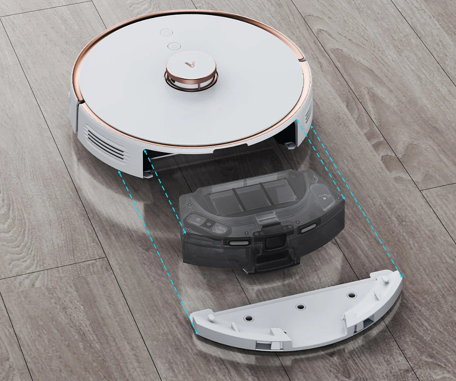 Xiaomi Viomi S9 se ocupă de aspirare și ștergere umedă în același timp. Aspiratorul are un recipient de apă cu un volum de 250 ml și o pompă controlată electronic, care poate fi setată la 3 niveluri de debit de apă.