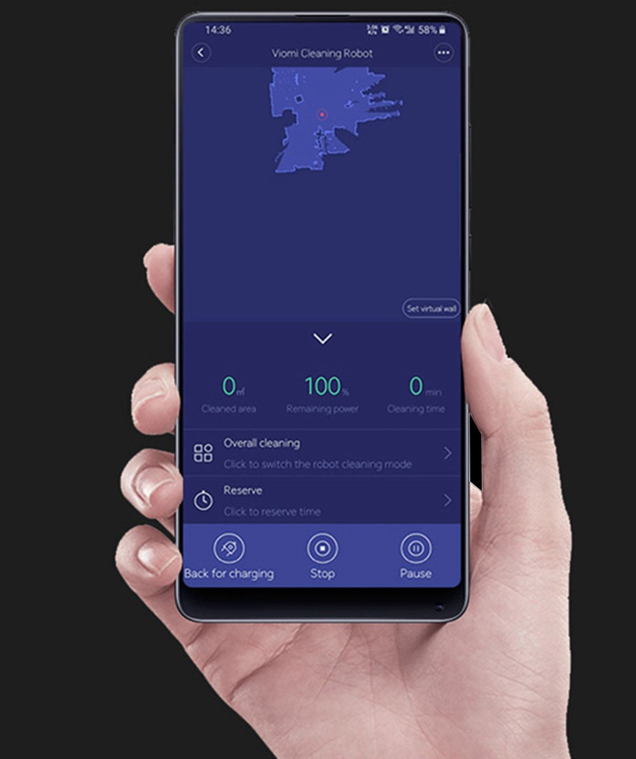 Datorită aplicației Mi Home, puteți planifica când și cât de des va ajuta aspirantul robotizat sau îi puteți oferi o instrucțiune unică de a aspira, chiar dacă trebuie să stați la serviciu. De asemenea, puteți controla puterea de aspirație și vizualiza traseul parcurs de aspirator în timpul lucrului sau puteți seta zone interzise de curățare și denumiți camerele în funcție de ideile dvs.