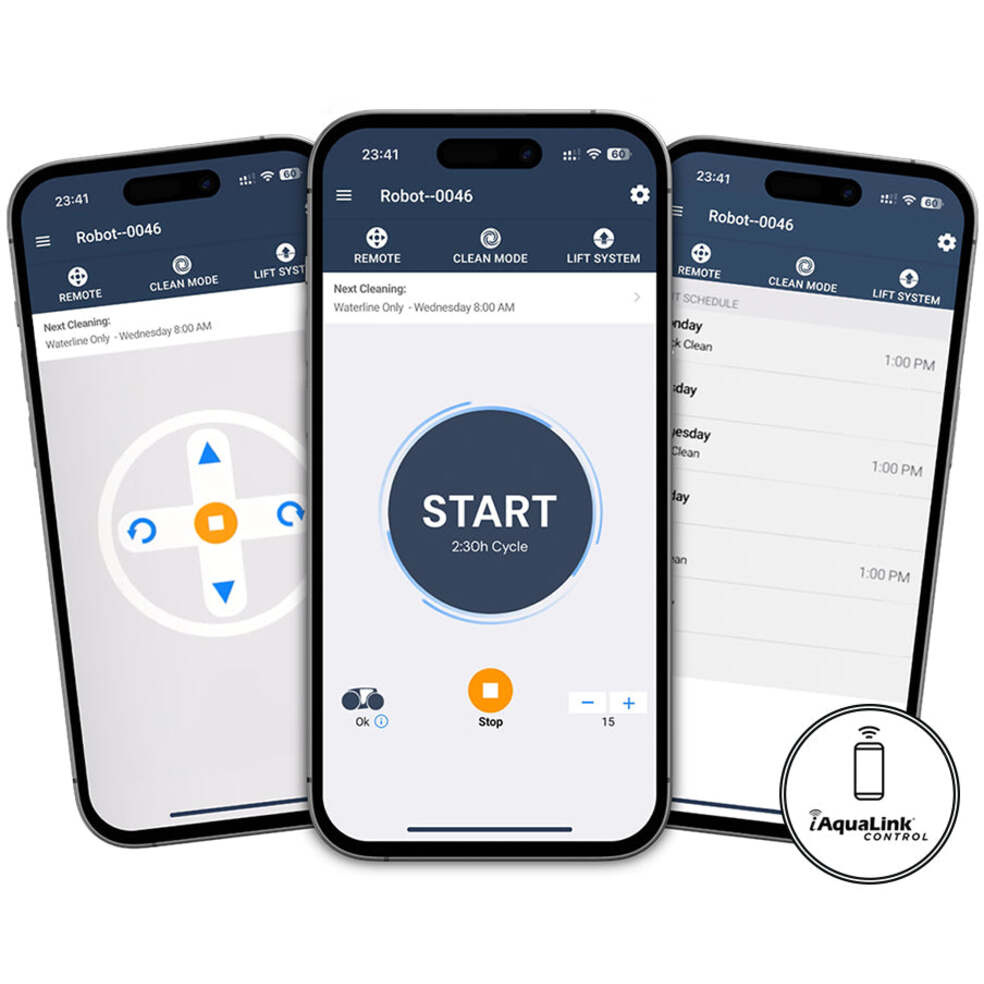 Aplicația AquaLink pentru smartphone-uri vă va menține conectat la robotul D-voastră 24 de ore pe zi, 7 zile pe săptămână, oriunde v-ați afla, asigurându-vă că piscina va fi întotdeauna pregătită.