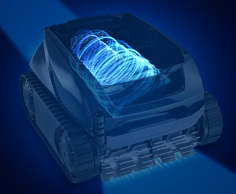 Aspirația ciclonică patentată Zodiac este cea mai puternică tehnologie de aspirație disponibilă. Folosind forța centrifugă, creează un vârtej care îndepărtează toate impuritățile din piscină.