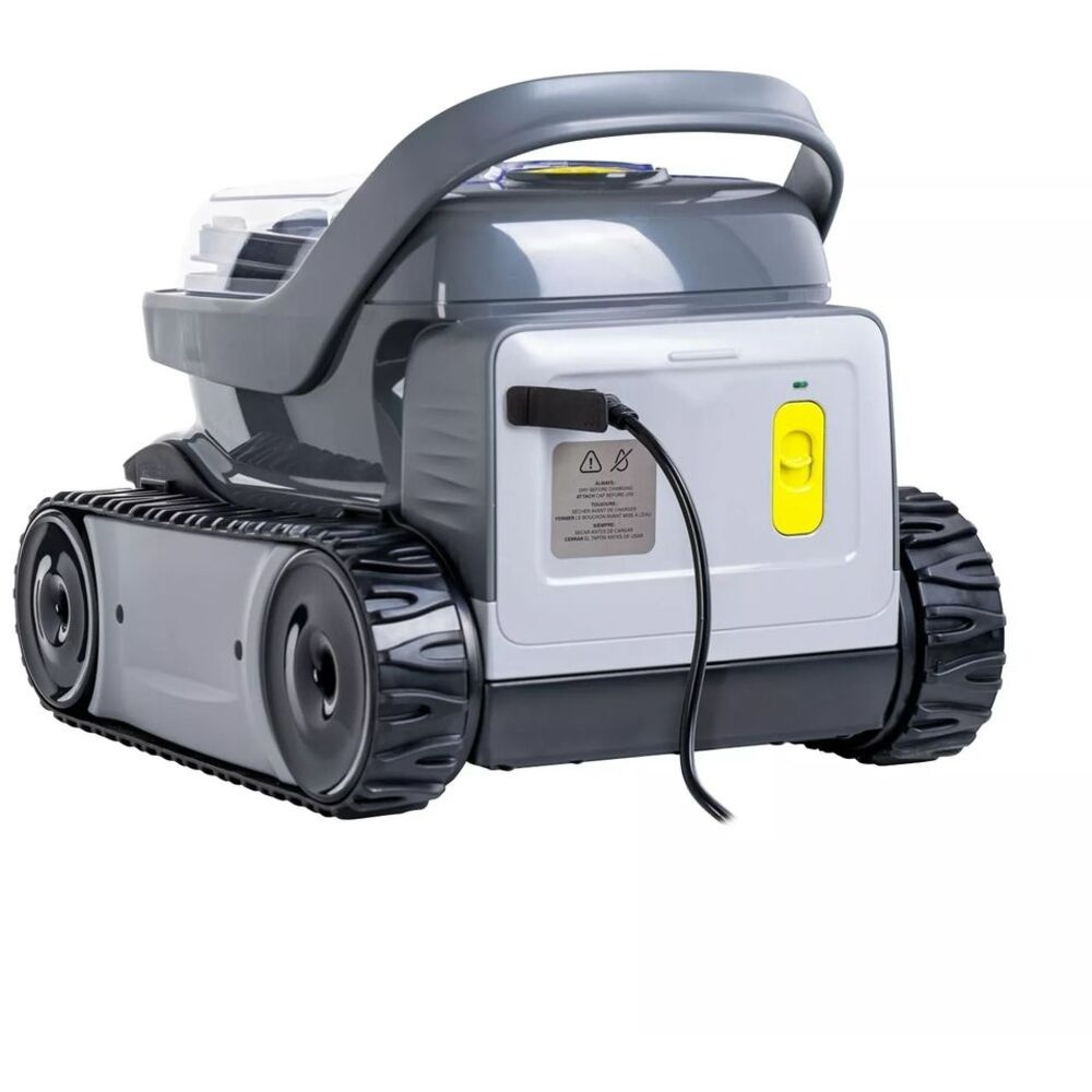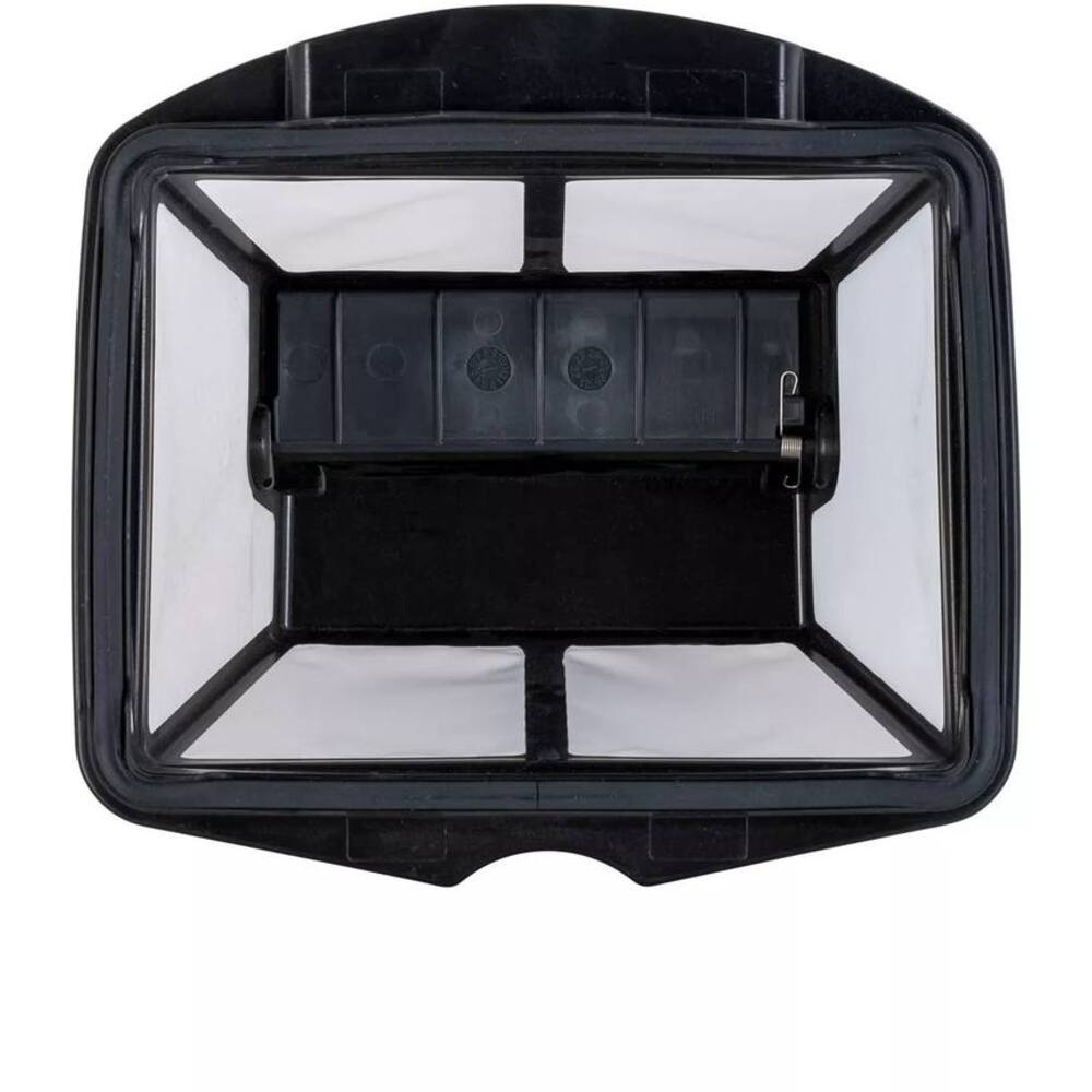 Robotul este echipat cu un coș solid de 2 litri pentru colectarea impurităților mai mari de 150 microni. Coșul de filtrare este ușor accesibil din partea superioară, iar capacul transparent permite verificarea rapidă a nivelului de umplere. Întreținerea este simplă - coșul se extrage și se clătește cu apă. Cu o lățime de aspirare de 16,8 cm, robotul acoperă eficient întreaga bază a piscinei într-un singur ciclu de curățare.