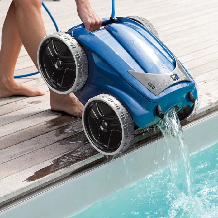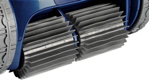 Zodiac RV 5400 4WD - 4 wheel drive - are tracțiune pe patru roți. În practică, acest lucru înseamnă că robotul depășește simplu obstacolele, se ridică pe majoritatea scărilor, curăță mai bine linia de suprafață și gestionează chiar și suprafețe alunecoase ... iar piscina dvs. rămâne mereu curată, ca nouă.
